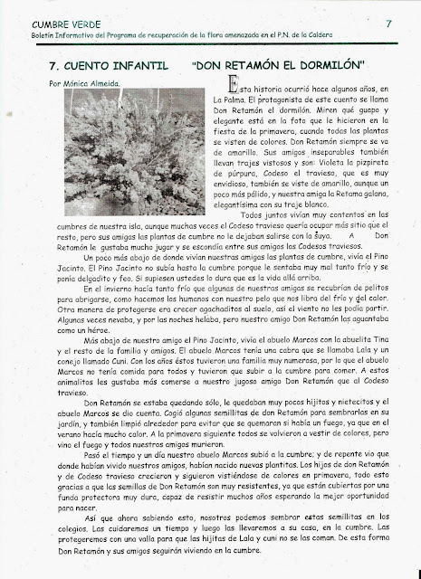 D. Mónica Almeida, Técnico del Parque Nacional de La Caldera de Taburiente, les contó el cuento de Don Retamón El Dormilón ayudándose de un power point y con la amabilidad, paciencia y buen hacer que siempre la caracterizan.